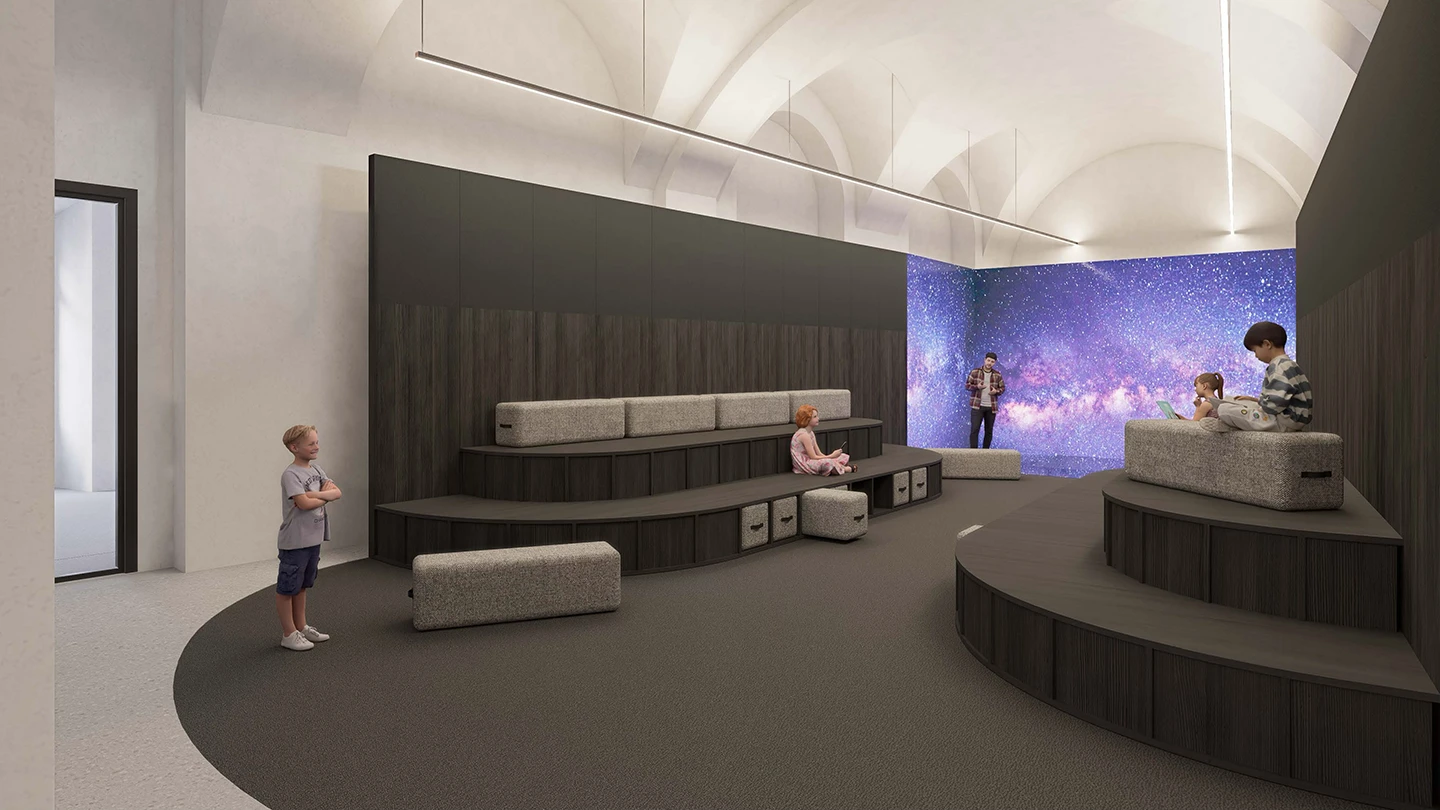 By 2027, a vibrant space for dialogue around science will be taking shape in Vienna’s city centre. Newly designed exhibition areas will showcase research topics from the participating institutions, alongside an immersive virtual reality LED installation that brings scientific visualisations to life in interactive 3D. An open and welcoming café area will also be created on the ground floor.